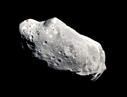Iron meteorites like the Sikhore-Alin come from asteroids, which are large rocks that orbit the sun in the same way that planets do. Over a million asteroids travel in a band or "belt" between the planets Mars and Jupiter. The asteroid that scientists have named Ida is a good example. It is irregularly shaped (instead of round like a planet), and it is about 33 miles long from end to end (--a very big rock, but certainly much smaller than a planet).