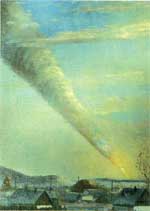 If we were able to cut away a section of such an asteroid, it would reveal several layers. On the outside there would be a stony layer. Beneath that would be a layer of heavier rock containing a significant amount of iron. Then at the core of the asteroid would be a very dense center composed almost entirely of iron with a little of the metal named nickel and only small amounts of other elements. Meteorites like the Sikhote-Alin come from the cores of asteroids. (Some meteorites contain less iron than Sikhote-Alins and would come from the middle or outer layers of asteroids.)